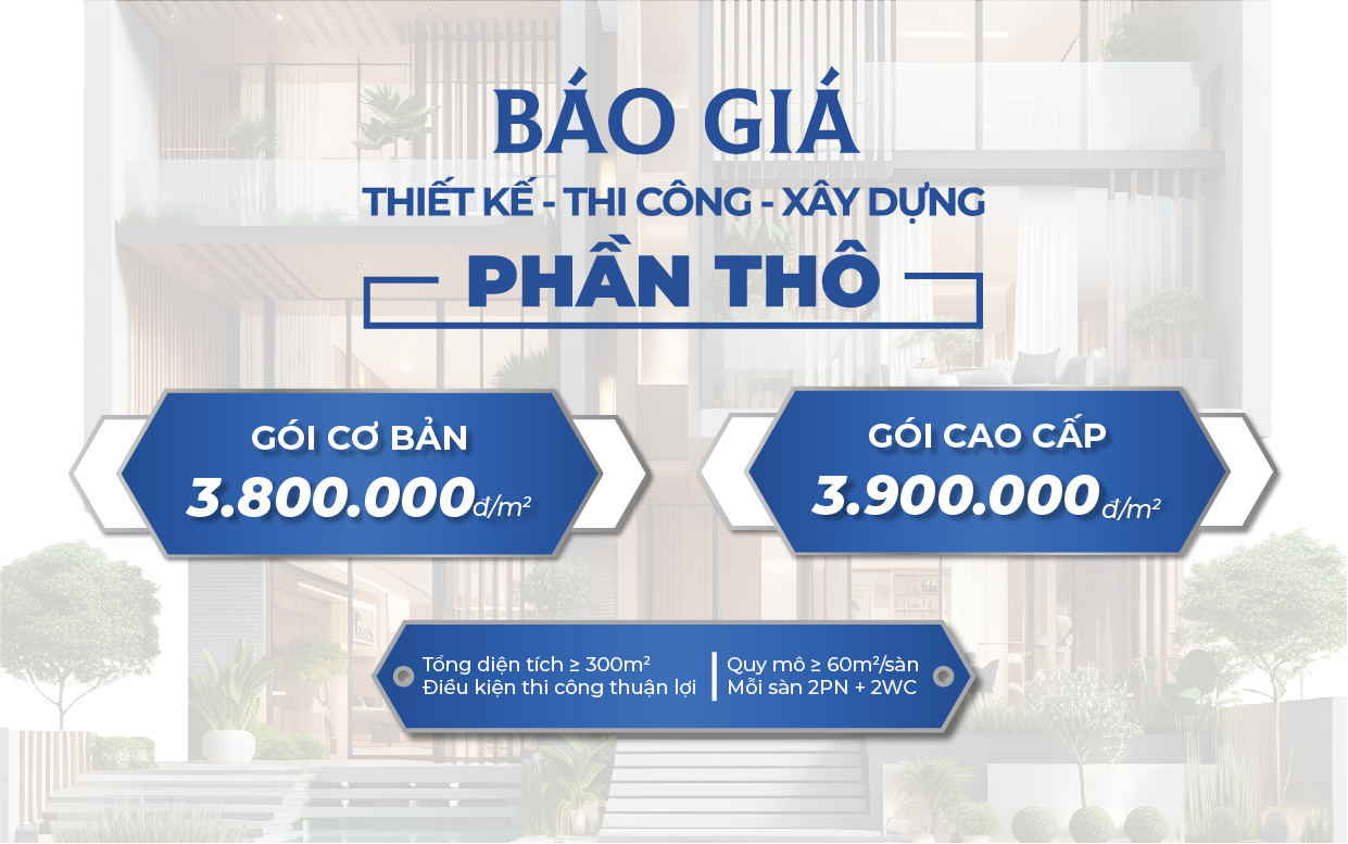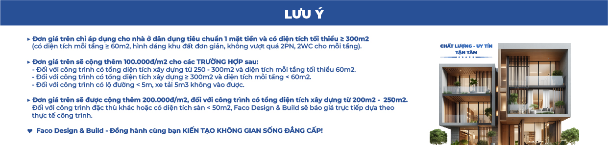 Để đảm bảo sự chính xác, độ tin cậy và chất lượng của công trình, Faco Design & Build trân trọng gửi đến quý khách hàng Bảng giá xây dựng phần thô.