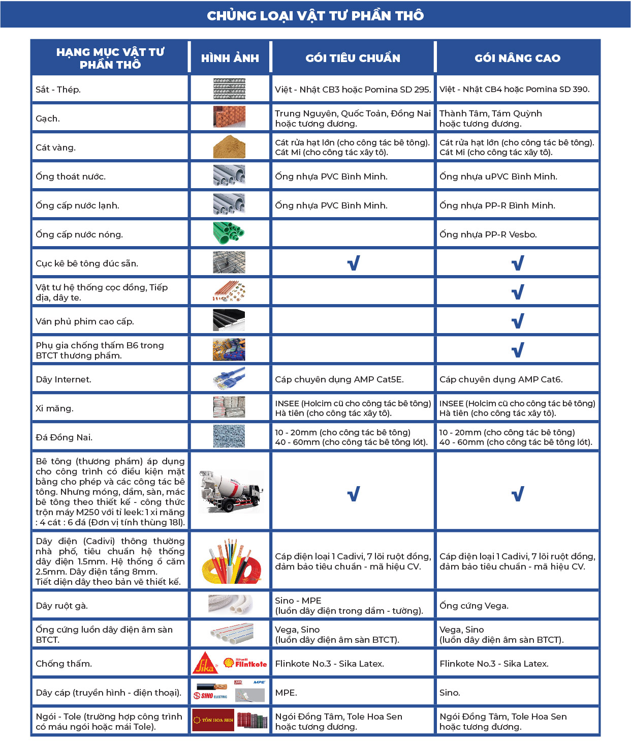 Faco Design & Build Gửi Đến Quý Khách Hàng Chủng loại Nguyên Vật Tư: