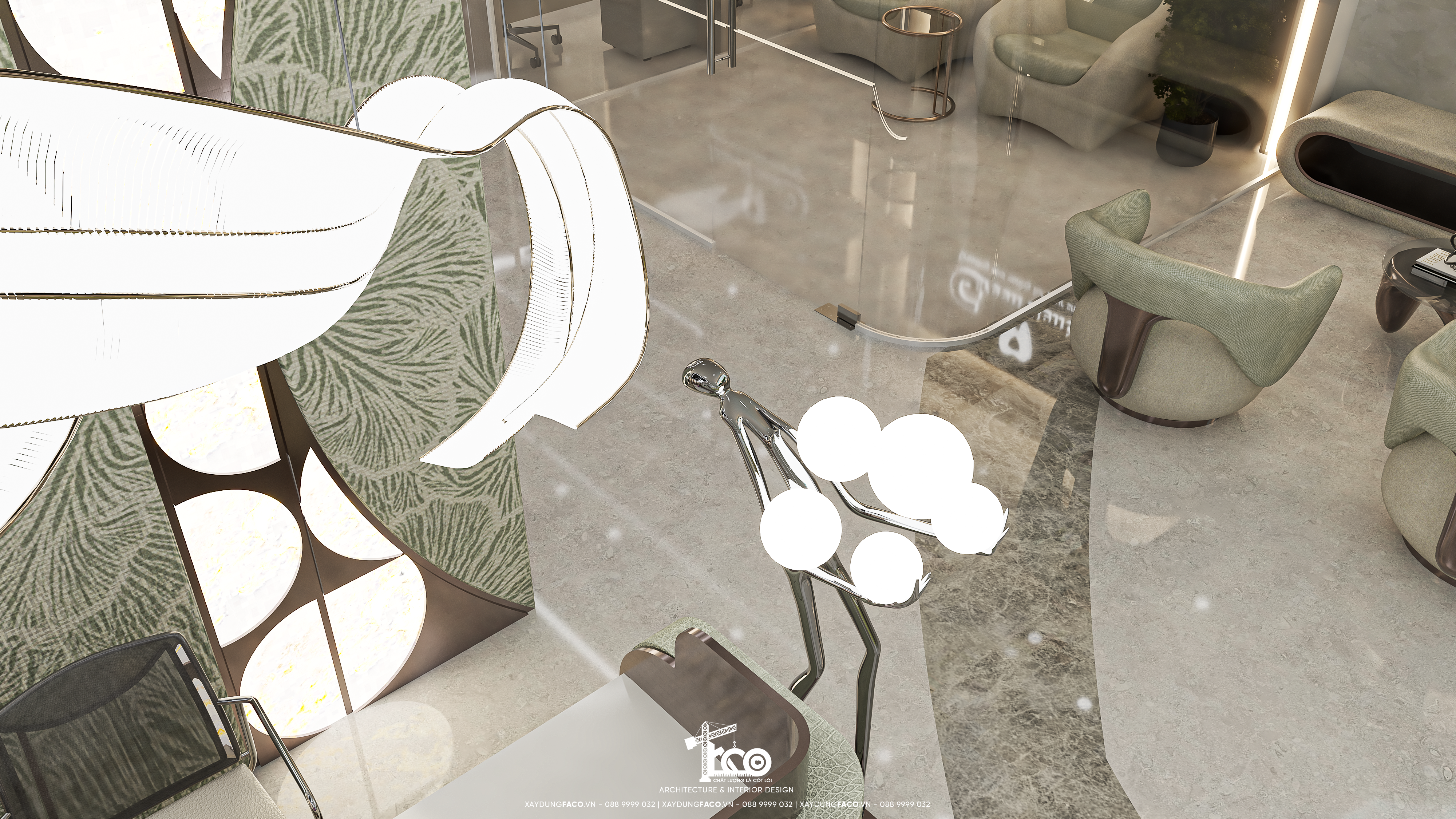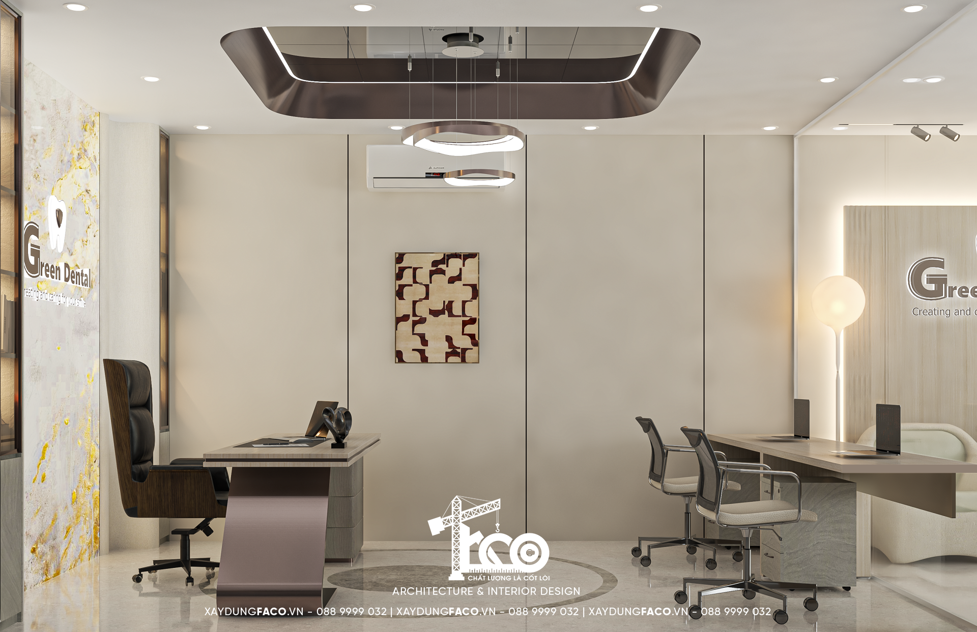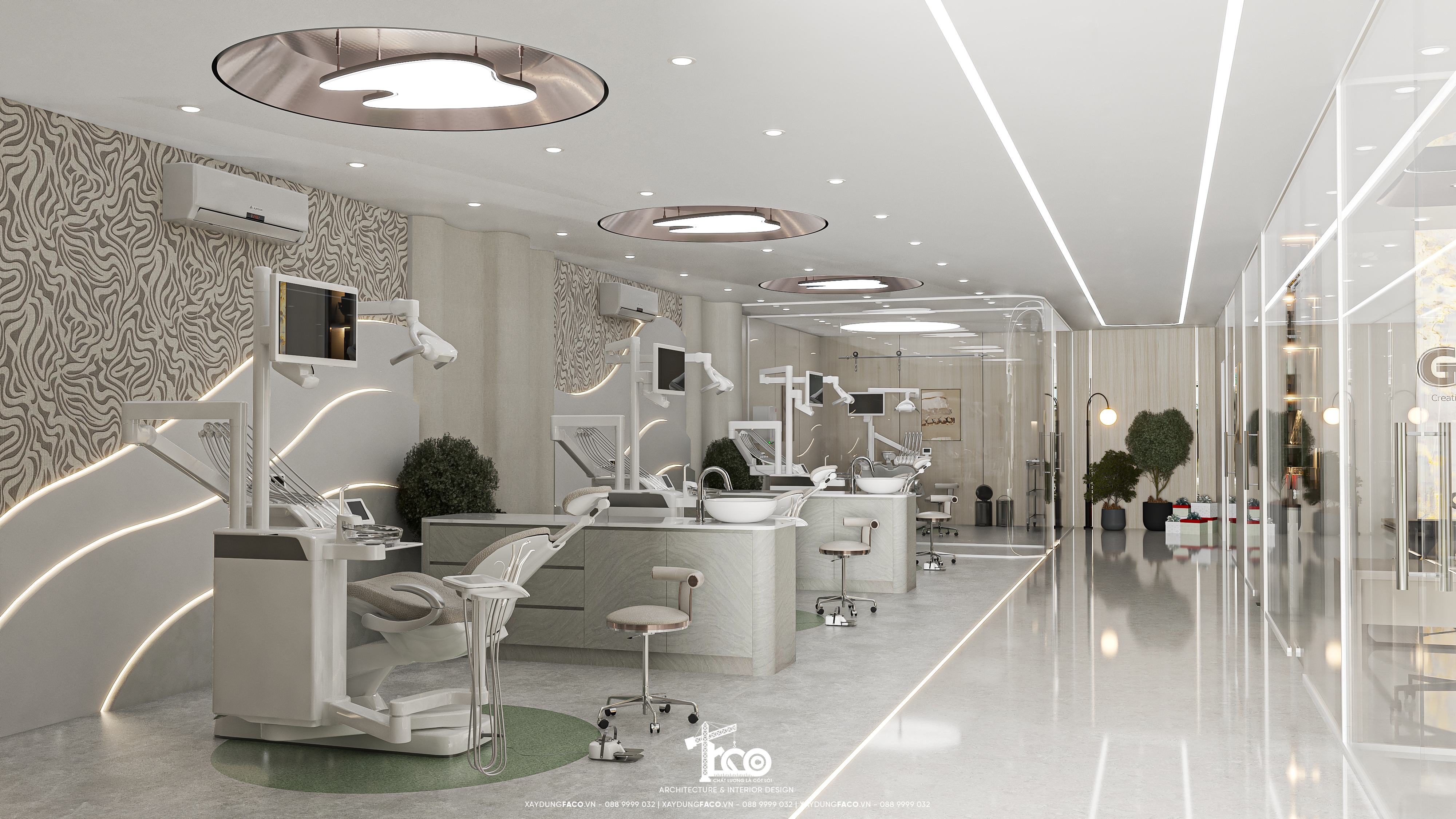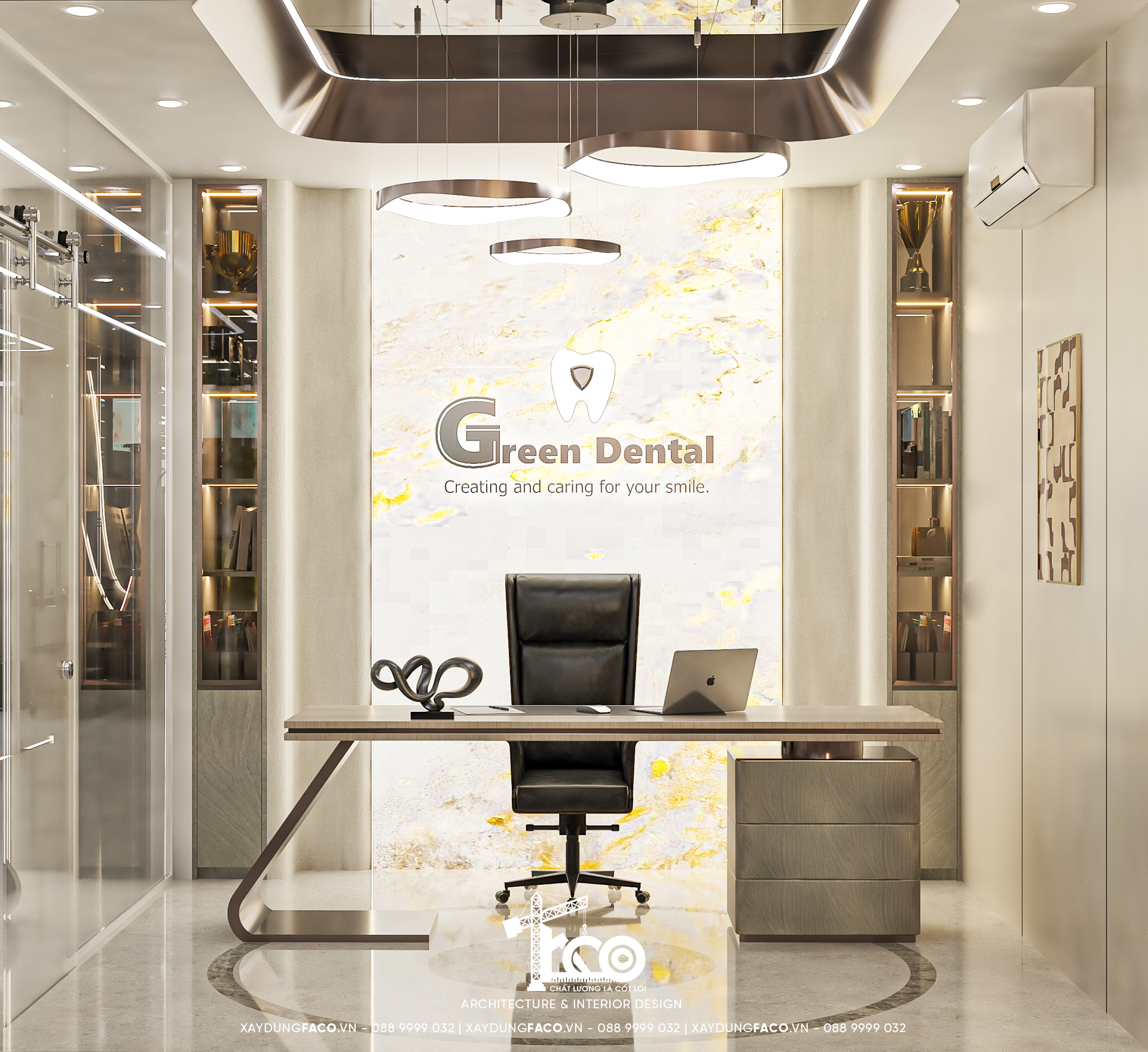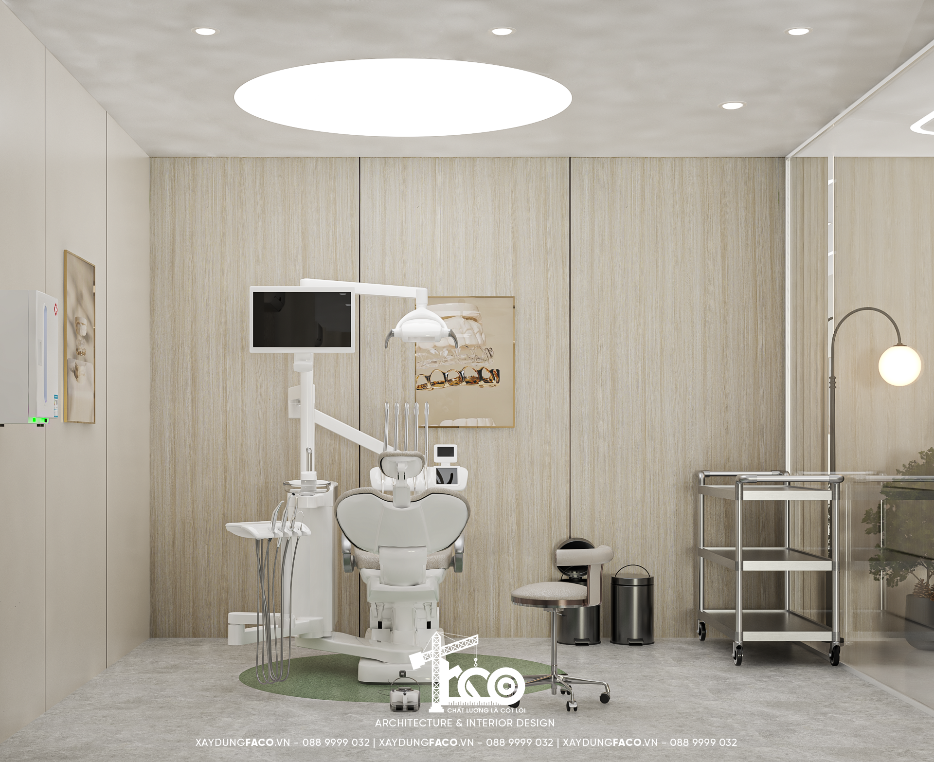 Với đội ngũ nhân sự chuyên môn cao và nhạy bén trong việc nắm bắt xu hướng của Faco Design & Build, chúng tôi không chỉ xây dựng các mảng tường, hơn cả, chúng tôi kiến tạo cảm xúc. Và Green Dental chính là một trong những minh chứng cho việc tạo ra không gian y tế chuẩn mực hoàn toàn có thể đẹp như một khách sạn 5 sao.