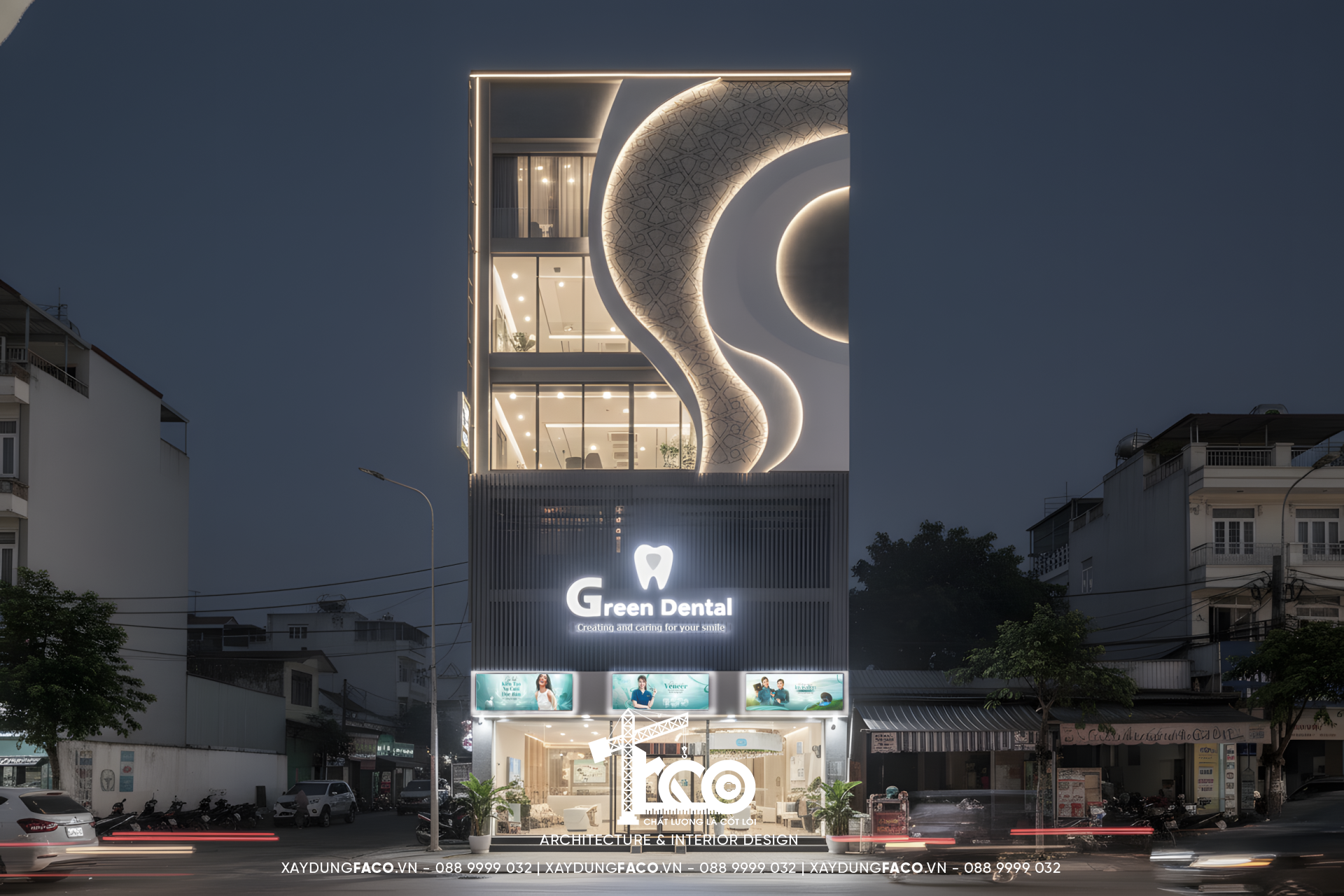 Trong bối cảnh thị trường nha khoa đang cạnh tranh khốc liệt, một phòng khám nha khoa thành công không chỉ dừng lại ở tay nghề đội ngũ y bác sĩ mà còn phụ thuộc vào sự “trải nghiệm không gian” của khách hàng. Hiểu được điều đó, Faco Design & Build đã kiến tạo nên Green Dental – một dự án nha khoa độc đáo, nơi kiến trúc đóng vai trò như một liệu pháp tâm lý, xoa dịu nỗi lo lắng và cũng là sự khẳng định đẳng cấp thương hiệu.