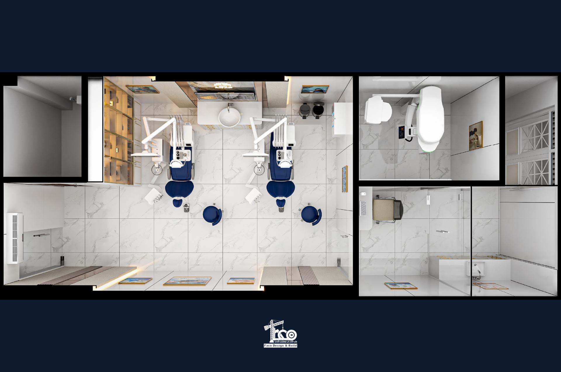 Với chúng tôi, việc bố trí mặt bằng khoa học sẽ giúp mọi người có sự trải nghiệm tối ưu nhất. Chúng tôi biến mỗi phòng khám khô khan trở thành điểm thư giãn, giúp xoa dịu triệt để tâm lý âu lo của khách hàng ngay từ bước đầu tiên. Từ việc lựa chọn vật liệu bề mặt chống bám khuẩn, chịu hóa chất đến hệ thống ánh sáng đa tầng hỗ trợ chính xác cho quá trình điều trị, mỗi chi tiết đều được tính toán vô cùng tỉ mỉ. Với Faco Design & Build, thiết kế nha khoa chính là nghệ thuật nâng tầm thương hiệu và mang lại sự an tâm tuyệt đối.