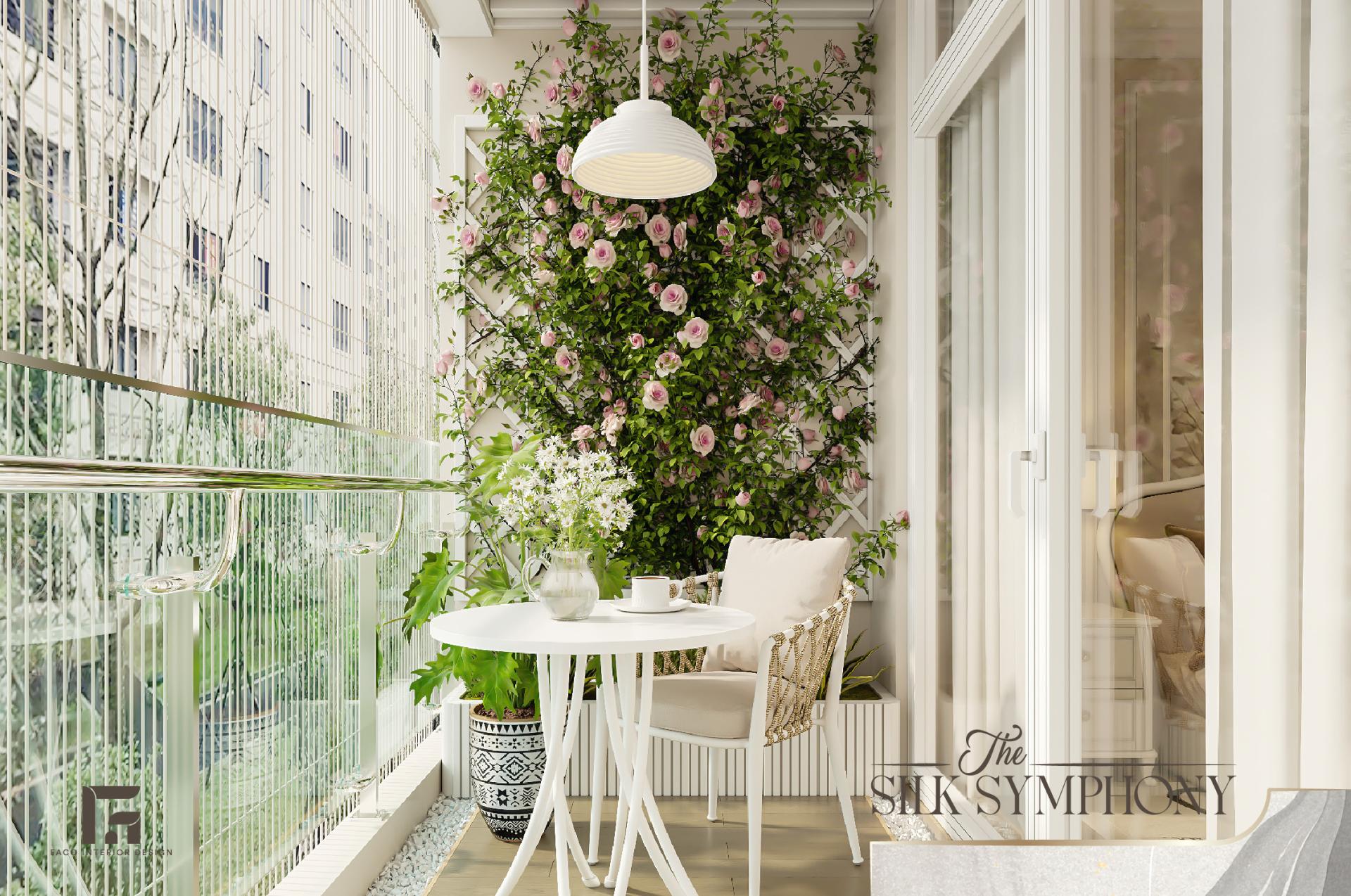Dù là không gian phụ, nhưng ban công lại được chúng tôi chăm chút tỉ mỉ với mong muốn biến nơi đây thành “trạm sạc năng lượng” cho các thành viên trong gia đình. Một bộ bàn sofa nhỏ, bao quanh là dàn hoa hồng leo và cây xanh tươi mát,… tất cả sẽ giúp bạn có được góc chill tại gia vào cuối tuần.