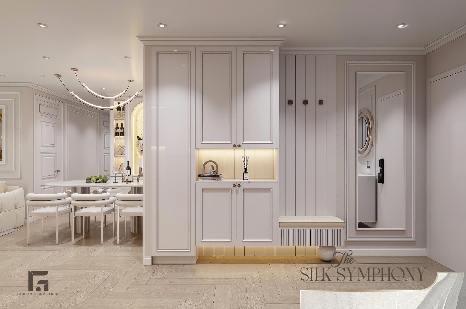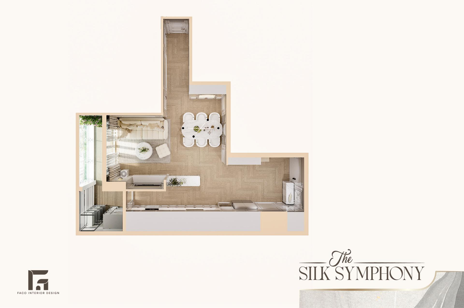 Vì sao chúng tôi lựa chọn cái tên cho dự án này là The Silk Symphony? Trong thế giới của các loại vải vóc, lụa (silk) được xem là “nữ hoàng”, là biểu tượng của sự óng ả, mềm mại và rất đắt giá. Faco Design & Build đã mượn chính những đặc tính của loại vải lụa để thổi hồn vào từng đường nét kiến trúc cho căn hộ này.